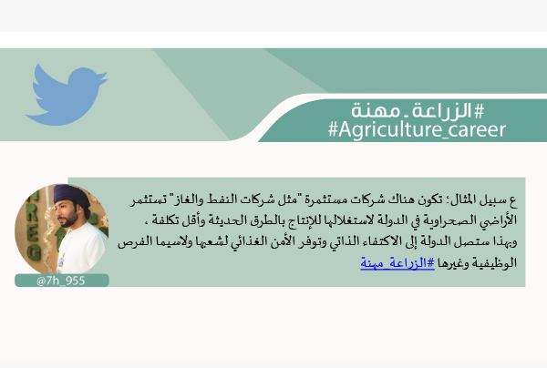 A video was presented to convey to the youth the promising future of agricultural jobs and to attract them to seek education in this sector. The Food and Agriculture College from the University of United Arab Emirates participated by sending students to share their experiences in pursuing careers in agriculture to the visitors of the exhibition. Also, the Faculty of agricultural and marine sciences at Sultan Qaboos University in Oman participated and presented various agricultural specialties and answered inquiries throughout the exhibition period to increase the awareness of visitors regarding all agricultural specialties and their importance.