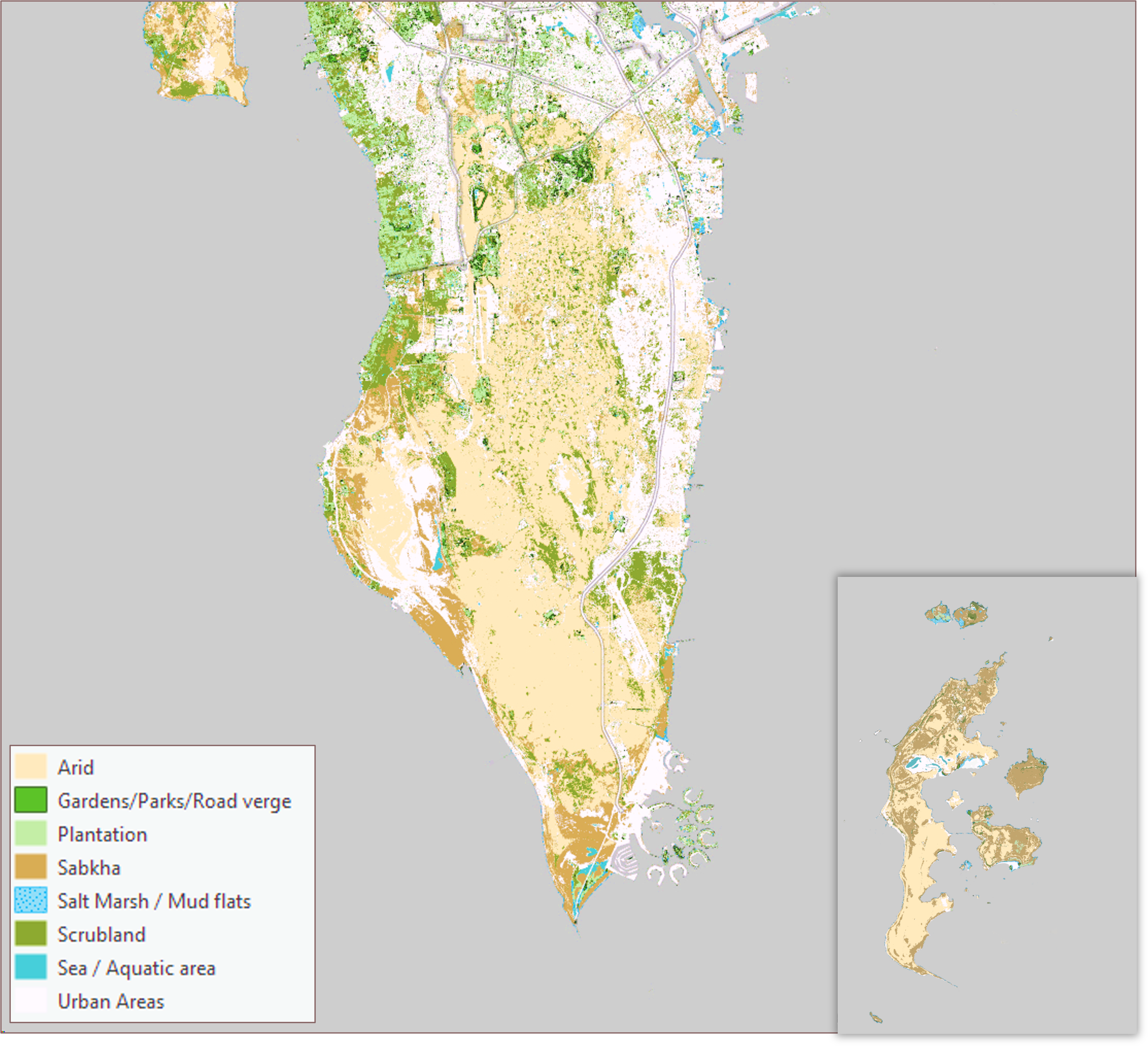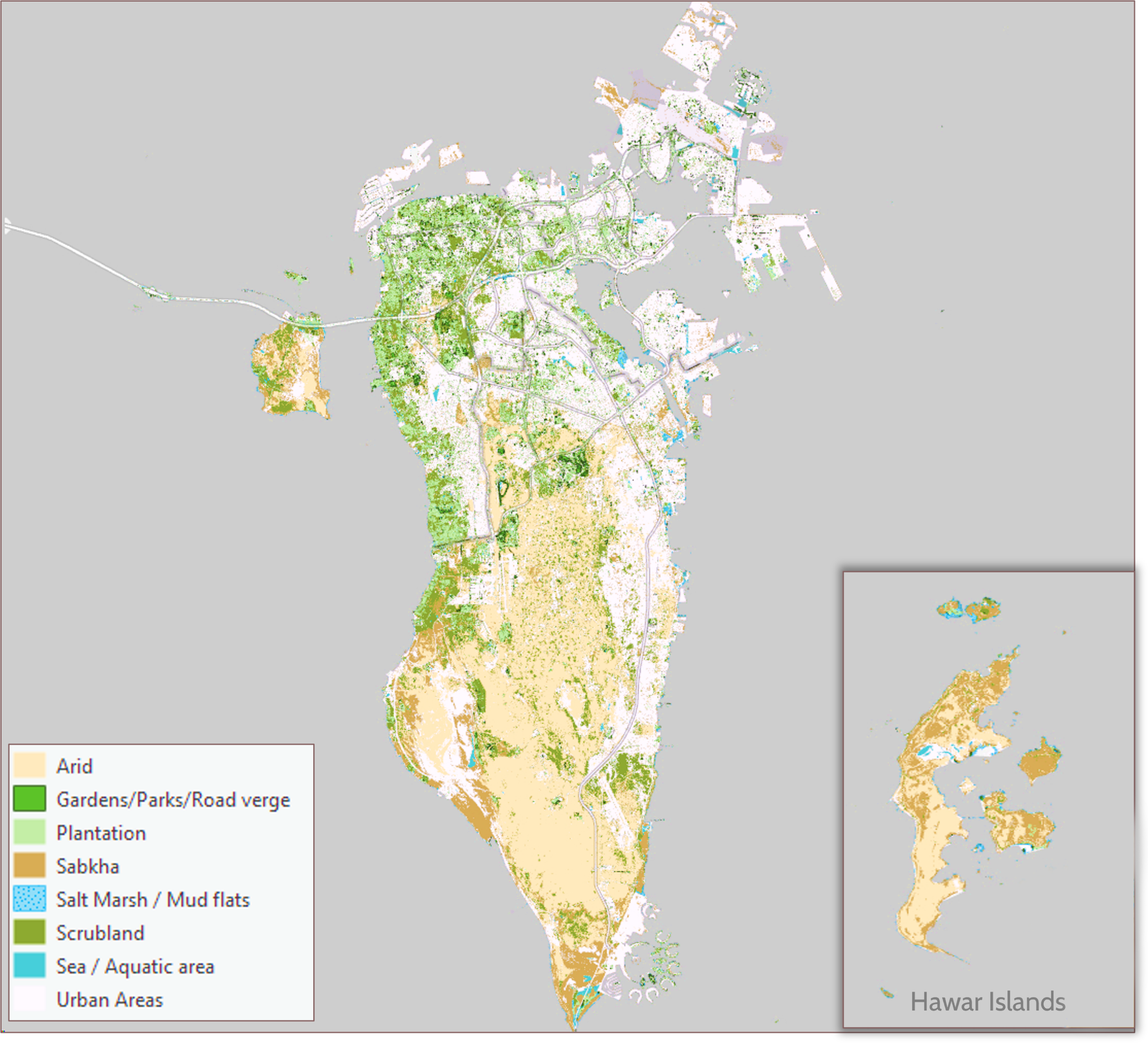 The Kingdom of Bahrain has a variety of vegetation habitats, each of which plays an important role in the ecosystem. It is important to protect and conserve all of Bahrain’s habitat types, as well as to develop and implement sustainable management practices. By doing so, Bahrain can ensure that its habitat types are preserved for future generations. This report provides a descriptive analysis of the Information & eGovernment Authority (iGA ) Botanical Atlas GIS data showing multiple habitats in Bahrain sorted from largest area in km2 to the smallest, along with a description of each habitat type and a recommendation.
